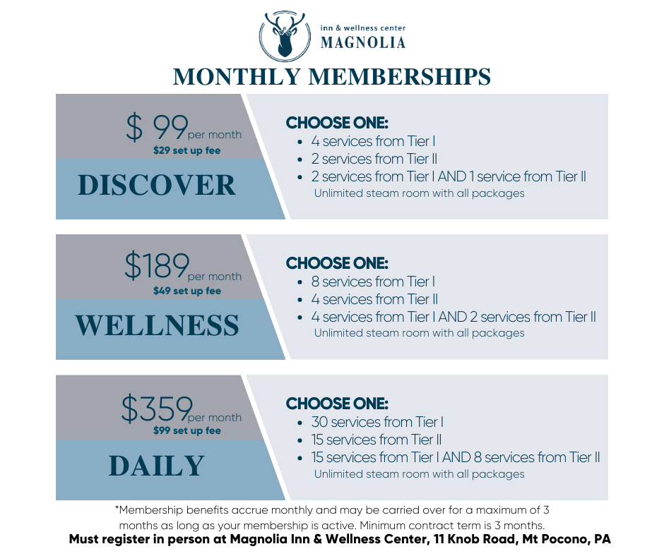 Book your services to our Poconos PA location and enjoy a package stay at our private stream side resort, Magnolia Streamside Resort.